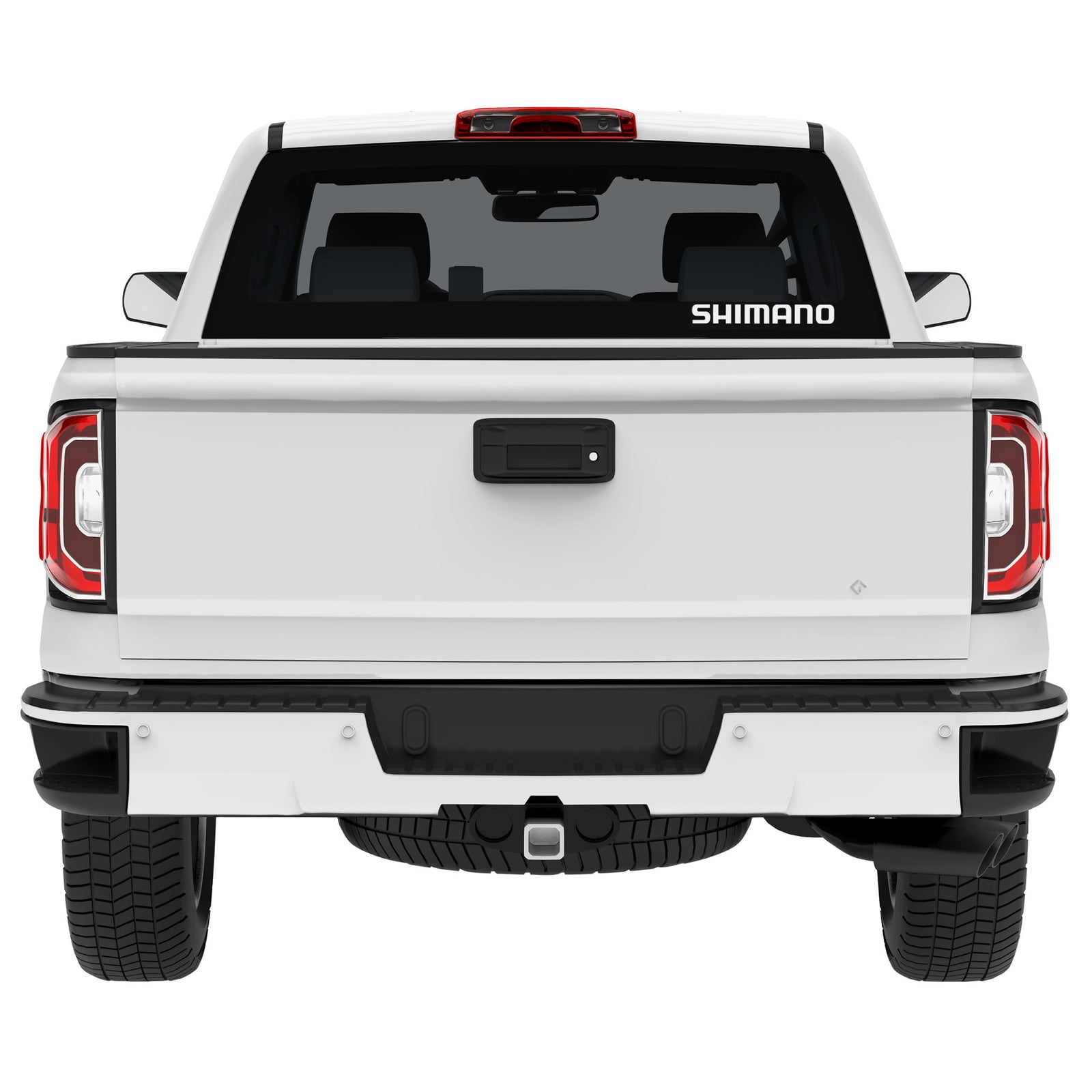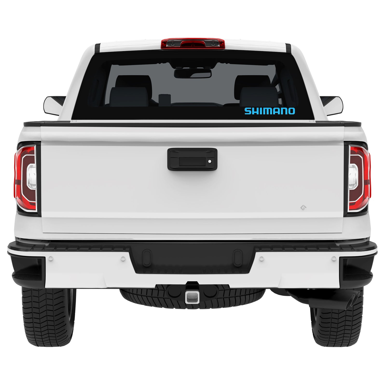 Shimano decals are available in three sizes —Small (4in x 0.5in), Medium (7.75in x 1in), and Large (12in x 2in) — and are offered in three colors — Cyan, Black, and White.